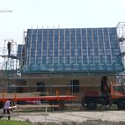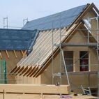 Um 17.00 Uhr wird mit der Montage des Wohnhausdachs begonnen -