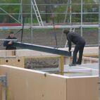 11.45 Uhr Beginn mit der Montage der Dachgeschosswaende -