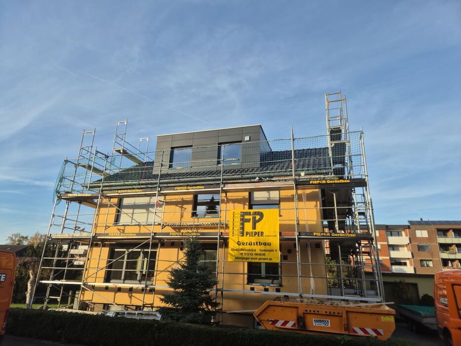 Bei einer seriellen Sanierung werden Wand- und Dachflächen durch werkseitig komplett vorgefertigte Holzrahmenbauelemente ergänzt. Dabei ist ein sehr hoher Vorfertigungsgrad, verbunden mit einer exakten Bestandserfassung erforderlich. Zum einen für eine schnelle und reibungslose Montage vor Ort und zum anderen aber auch, um für diese Maßnahme entsprechende Förderungen zu beantragen. Die Anforderungen hierfür sind (wie sollte es auch anders sein) natürlich vom Gesetzgeber definiert. So ist, unter anderem, eine entsprechende Zertifizierung erforderlich (haben wir), der bestehende Baukörper muss örtlich komplett in 3D digital eingescannt werden (machen wir), Fensterelemente müssen schon ab Werk eingebaut werden (können wir) und und und ….